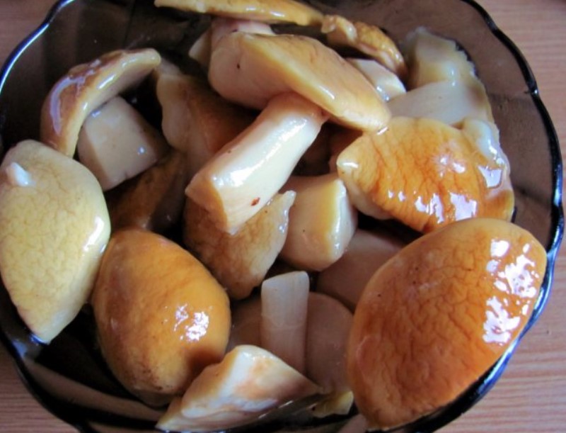 За да мариновате, варете гъбите във вода за 20 минути, след което ги извадете с решетъчна лъжица, вместо да ги отцеждате в гевгир. Добавете няколко зърна черен пипер, карамфил, дафинов лист и малко оцет към водата, варете още 5 минути, след което подредете гъбите в стерилизирани буркани и ги залейте със саламурата.