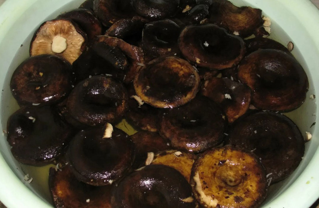 Токсините се натрупват в гъбите по време на растежа. Освен това, колкото по-стара е черната млечна гъба, толкова повече вредни вещества съдържа. За да премахнете токсините, накиснете я за няколко дни, като периодично сменяте водата. След това я сварете със сол и дафинов лист. Варете гъбите 30 минути. Едва след това можете да ги мариновате в предварително стерилизирани буркани.