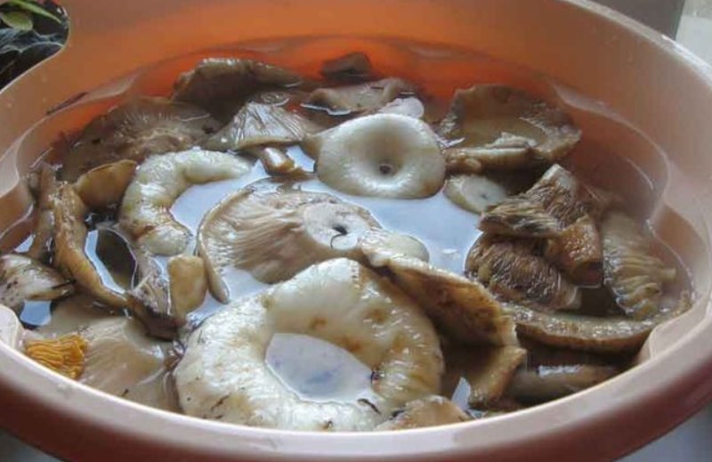 Полезен съвет! Ако не сте сигурни какъв вид млечни гъби използвате или ако планирате да готвите смес от бели и черни сортове, накиснете ги за 2-3 дни. Сменяйте водата поне два пъти на ден.