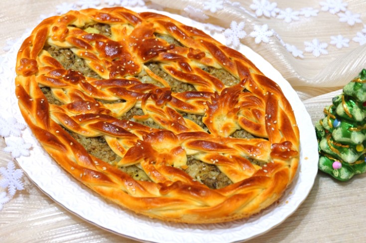 Домашен пай със солени млечни гъби и картофи
