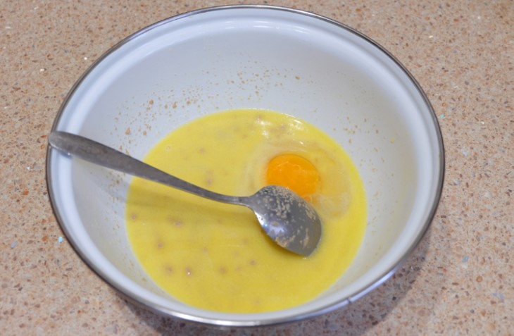 Добавете яйцето и солта. Разбъркайте добре сместа.