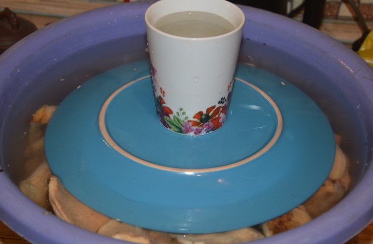 - Покрийте с капак, поставете тежест отгоре и поставете на тъмно и хладно място за 3 дни.