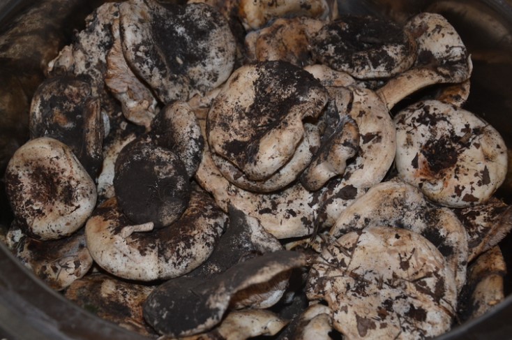 На следващия ден използвам нож, за да почистя гъбите, като остъргвам останалата пръст – сега е по-лесно, след като са напоени. Изплаквам обилно вътрешността, като се уверя, че между хрилете не е останала и зрънце пясък – течаща вода и четка за зъби ще свършат работа.Най-твърдите и най-красивите ще бъдат използвани за мариноване в саламура. Останалите ще бъдат пресовани.