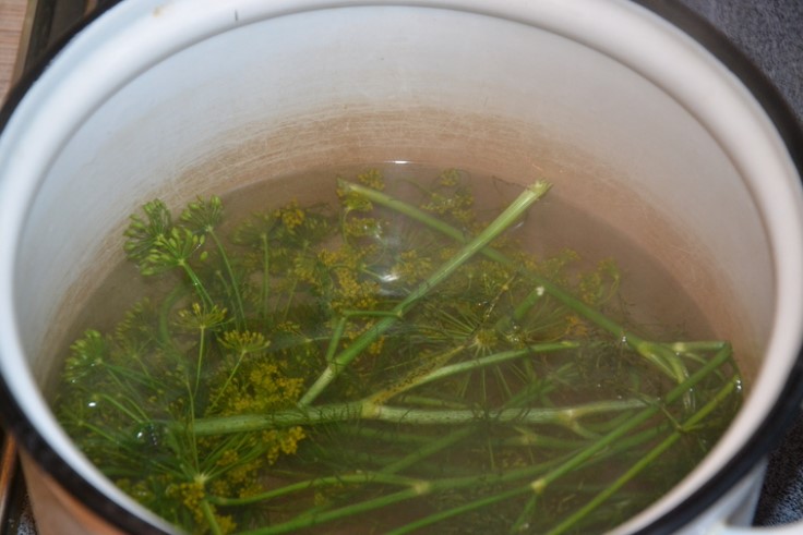 Добавете 3 супени лъжици едра сол към 1 литър вода. Оставете да заври, по желание добавете копър, варете 5 минути, след което извадете копъра. Оставете да се охлади.