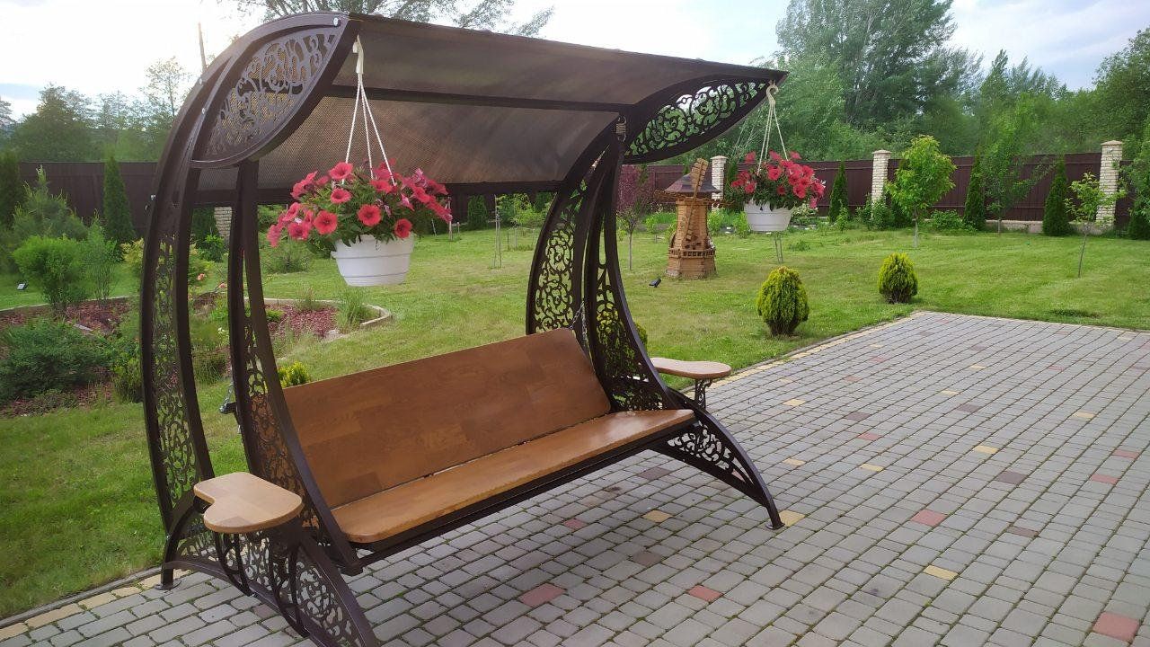 - Дъждобран. Повечето модели градински люлки се предлагат с такъв. Той ви позволява бързо да се предпазите от дъжда. Това е не само удобно, но и предпазва самата люлка от корозия и повреда на меките седалки поради проникване на вода.