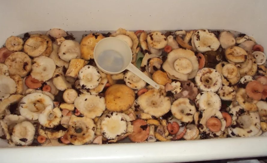 Преди мариноване, млечните гъби трябва да се накиснат в хладка вода за два до три дни. Водата трябва да се сменя поне веднъж на ден. Просто обърнете внимание на теглото на гъбите (ако вашата рецепта за мариноване изисква това); след накисване те ще тежат повече, защото ще са абсорбирали влага.