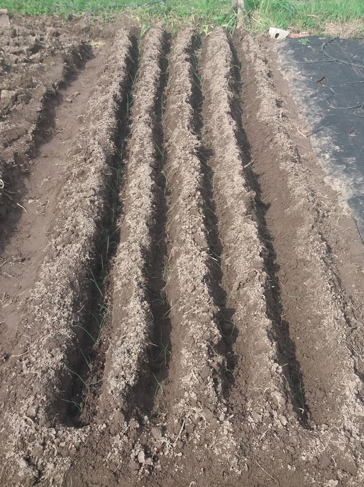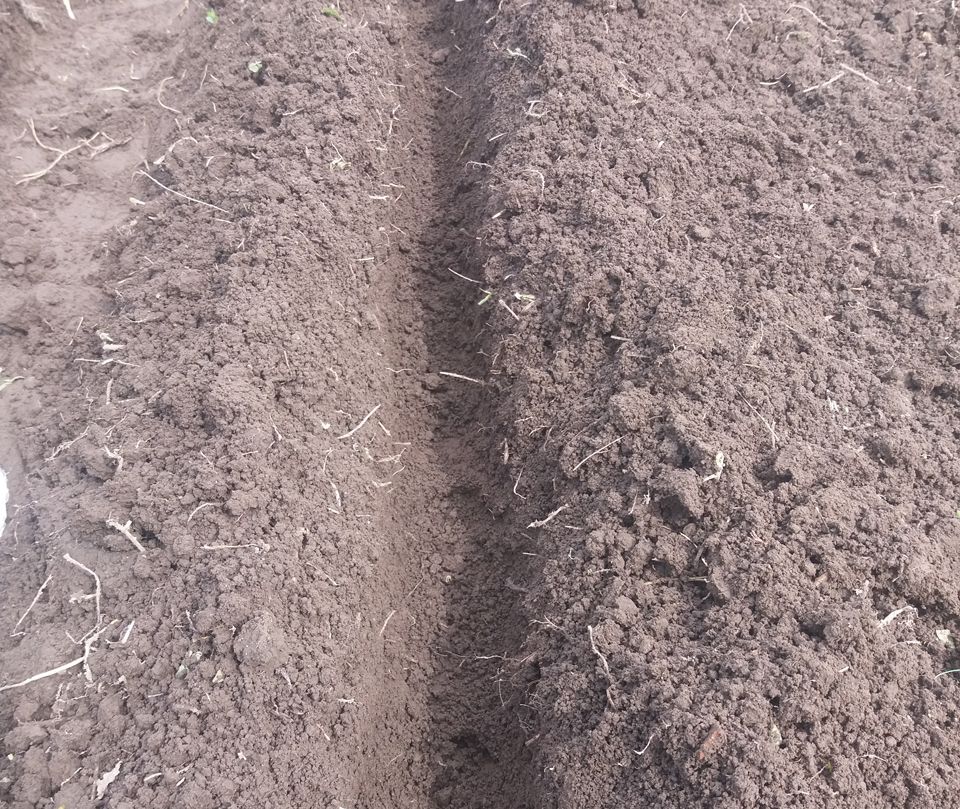 Не забравяйте да направите браздите така, че върховете на разсада да са под или на едно ниво с горния слой на браздата. След като всичко е засадено, полейте внимателно, но обилно.