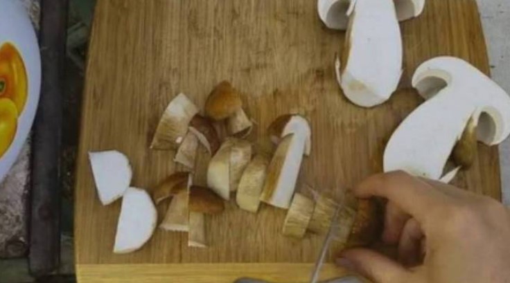 Гъбите трябва да се приготвят предварително и да се нарязват на парчета с подходящ размер.