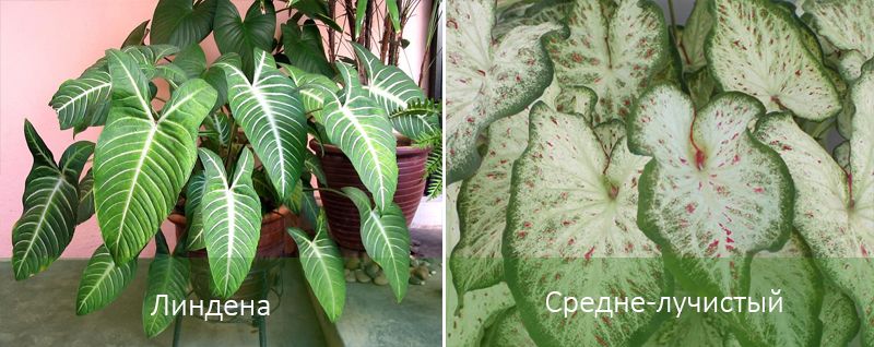 | Линден | Среща се в тропическите гори на Колумбия и има едни от най-големите листа – до 60 см дължина и 20 см ширина. Те са тъмнозелени с бели жилки. Дръжките са дебели, покрити с червени ивици и достигат до 60 см височина. |