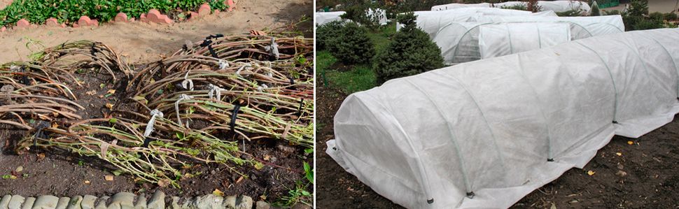 Окопайте ги с компост и поръсете с паднали листа. Когато температурата падне до -5 до -7°C, те могат да бъдат покрити с пластмасово фолио или покривен материал, като се поставят на арки над храстите.