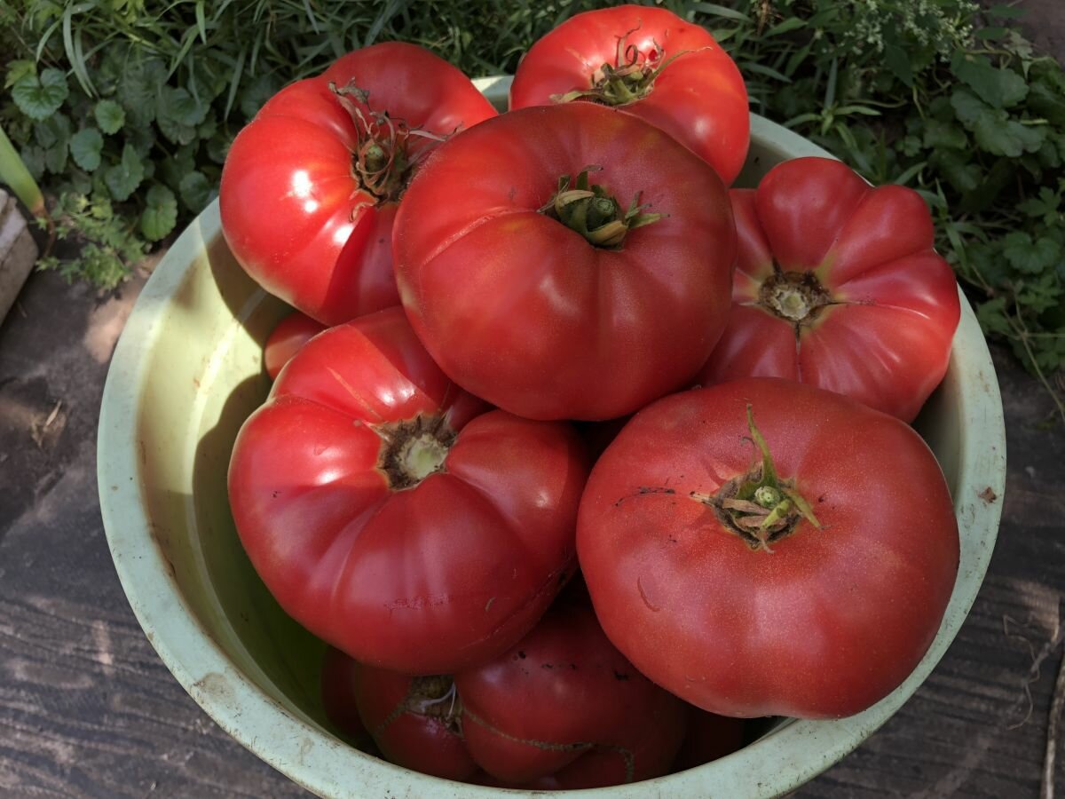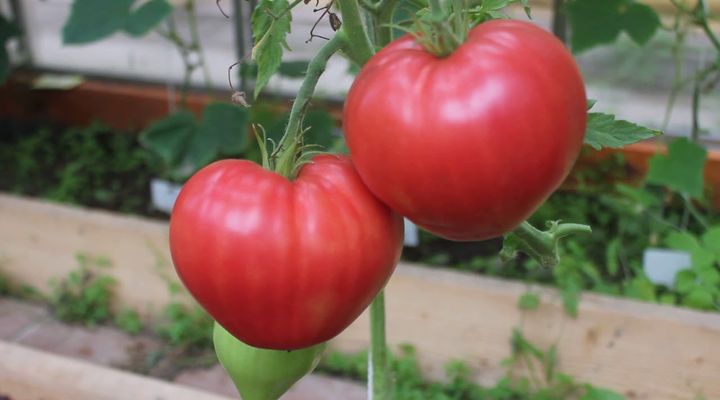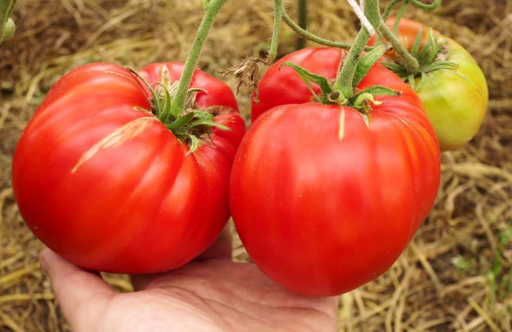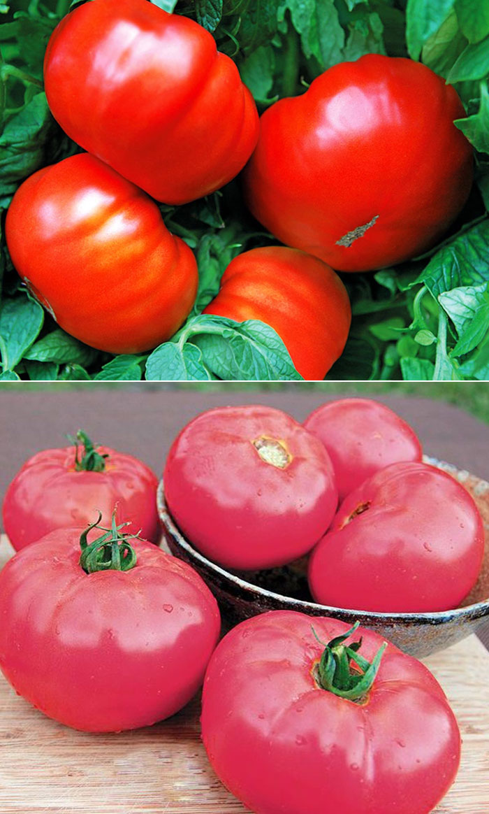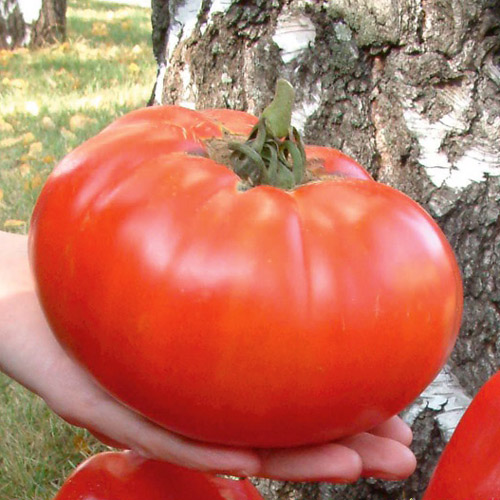Среднозреещ индетерминантен сорт за оранжерии и открита земя. Подходящ за салати и консервиране. | Сърцевидни, оребрени, розови, 300-600 г (до 1200 г). Отличен вкус. |