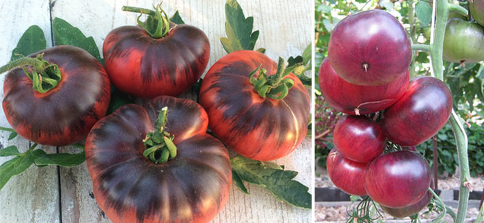 Среднозреещ индетерминантен сорт за открита земя и оранжерии. Изисква подпъхване и формиране на 1-2 стъбла. Подходящ за салати и преработка в доматени продукти. | Плоско-кръгли, оребрени, тъмно розови с тъмнолилави ивици, 150-250 г. Отличен вкус. |