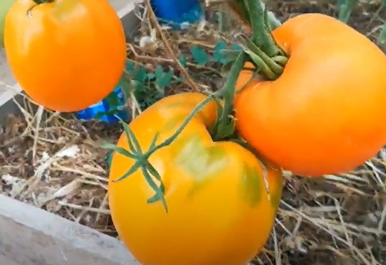 Среднозреещ индетерминантен сорт за оранжерии. Изисква оформяне и опора. Подходящ за салати и консервиране. | Сърцевидни, леко оребрени, оранжеви, 400-800 г. Добър до отличен вкус. |
