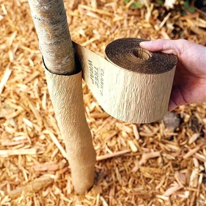 Необходимо е също така да се връзват младите дървета, за да се предпазят от слънчево изгаряне и гризачи.