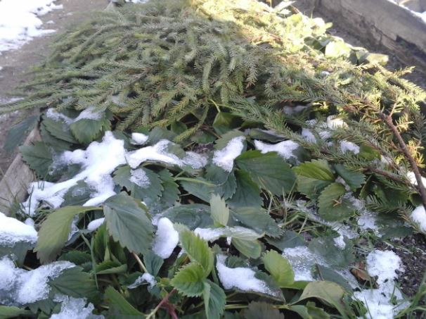 Преди да падне сняг, е важно да покриете ягодите (особено 1-2 годишните). Можете да защитите реколтата с клони, останали от резитбата, или стъбла на растенията. Най-важното е те да не са болни.