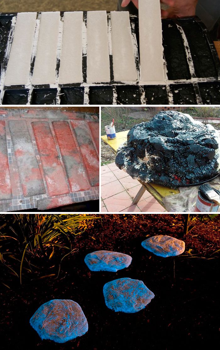 Предимството на тези продукти е, че камъните могат да бъдат направени с еднакъв размер и цвят. С тях се работи лесно и при създаване на вътрешни фуги в цветни лехи. Недостатъкът е, че се износват бързо, за разлика от естествените камъни.