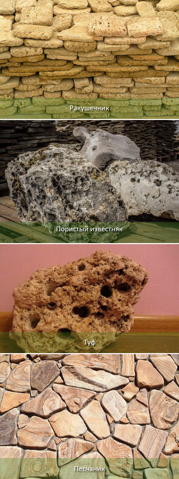 - Порест варовик, който се съчетава добре с мъх. Предлага се в най-различни цветове, от кремав, жълтеникав до розов.