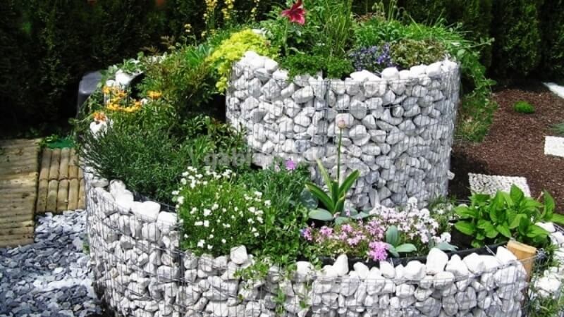 Отличителна черта на този тип цветни лехи е използването на двуслойна мрежа за металната рамка. След това в мрежата се поставят камъни или друг материал.
