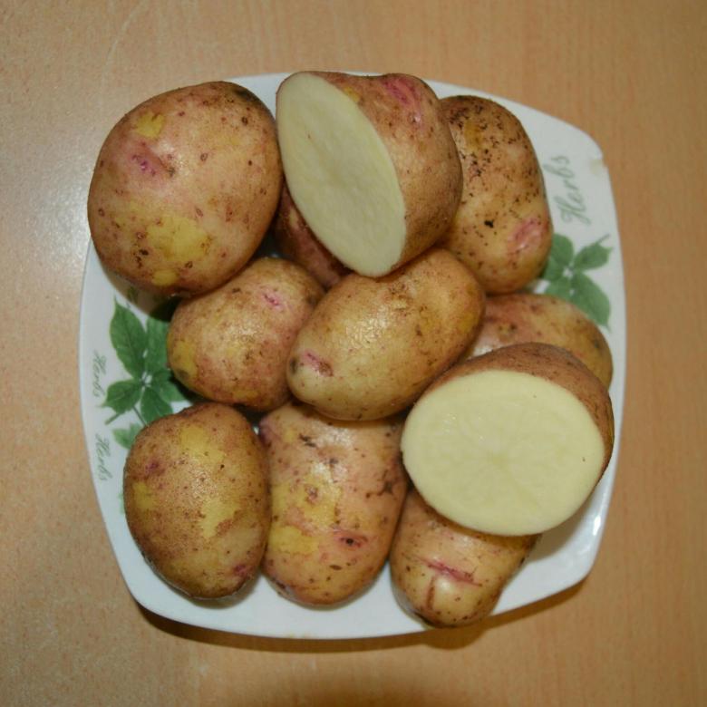 Грудките са овални и удължени. Кожицата е червена. Месото е жълто. Средното тегло на грудката е 120 г. Картофите не потъмняват след обелване и нарязване. Западносибирски. |