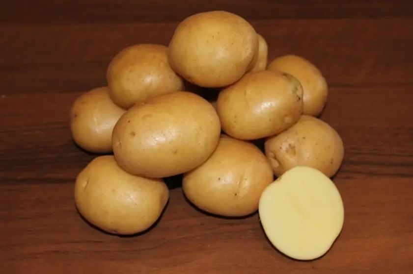 150-250 ц/ха | Среднозрял сорт (90-110 дни). Характеристиките на сеитба и растеж са подобни на тези на описания по-горе сорт Сказка. Грудките са кръгли, с жълтеникава кора и малко по-светла плът. Картофите съдържат относително висока концентрация на нишесте и са подходящи за консумация на трапеза. Готвят се добре, без да потъмняват. Имат дълъг срок на годност и много приятен вкус. Понасят добре преовлажнена почва. | 0,025 г от 24 рубли. |