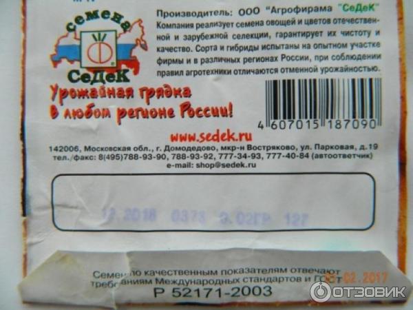 На гърба на опаковката е цялата необходима информация за сорта.
