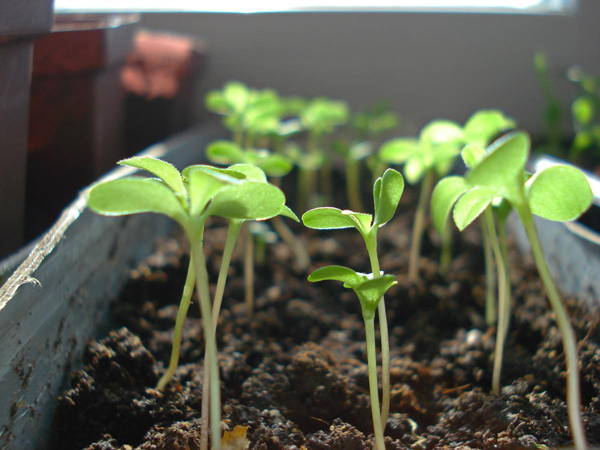 Не е необходимо да се берат разсадите след появата на два листа; те се поръсват внимателно с рохкава почва и когато пораснат малко повече, се пресаждат в по-просторни контейнери, например отрязани части от пластмасови бутилки.
