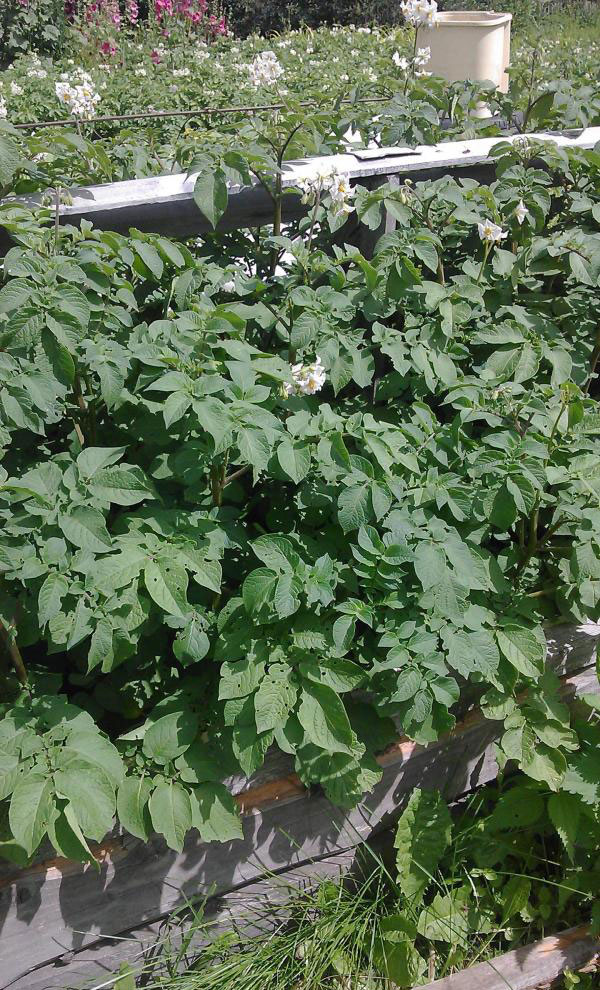 Между другото, все още не сме открили никакви празнини (с изключение на работата на мишката), дори в най-големите картофи.Догодина определено ще засадя картофи Сарпо Мира, но сред обикновени картофи, където мишките не вдигат толкова шум, колкото в топла, покрита с дъски, многослойна леха. Много ни хареса този сорт, така че препоръчвам на други градинари да го опитат, особено ако късната болест е чест проблем. Върховете бяха все още енергични и зелени, когато ги изкопах, без да показват признаци на това заболяване.