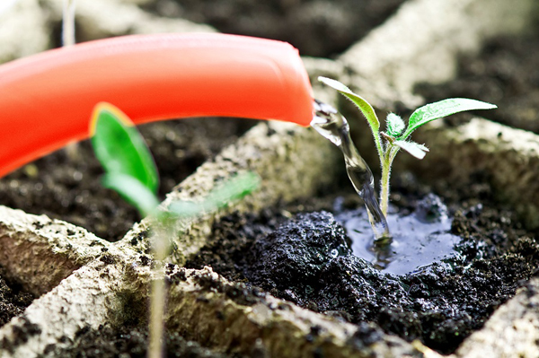 Избягвайте използването на лейка или бутилка, за да не повредите развиващите се корени. Най-добре е също така да избягвате контакт на течности с издънките.