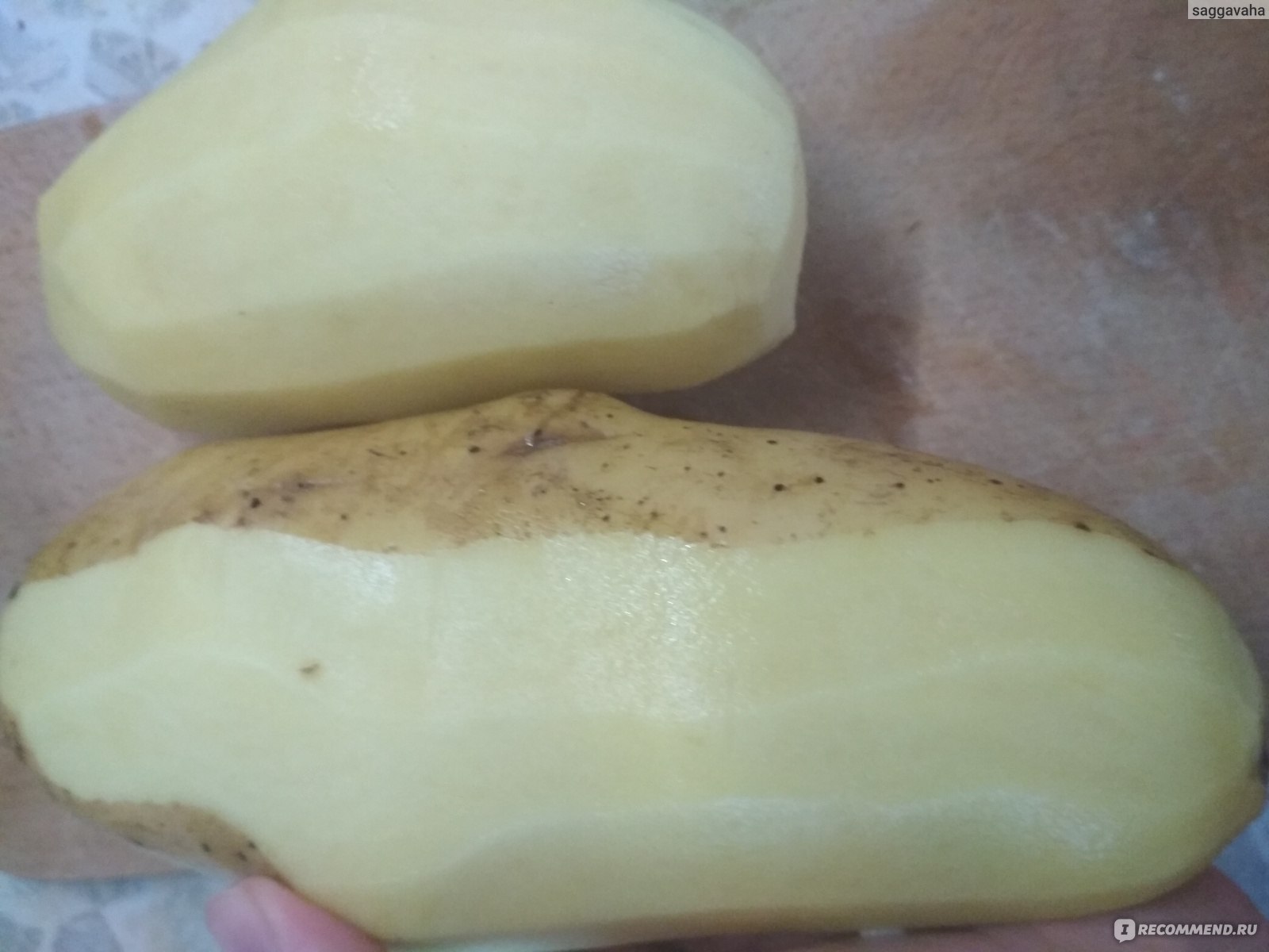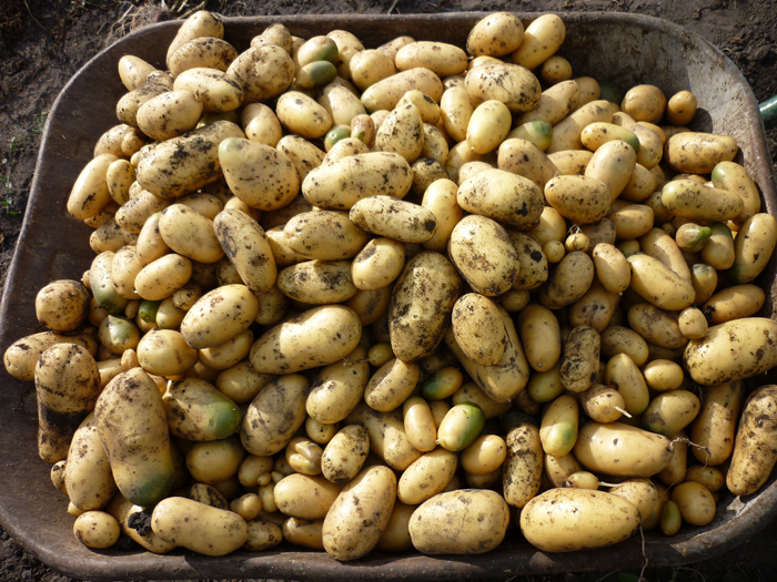 Първо, не е нужно да отрязвате една трета от картофа, когато го белите. Когато прочетох описанието на сорта впоследствие в различни градинарски и летни форуми за 94% продажност, мога да потвърдя, че тази цифра не ме изненада. Нямаше дълбоки дупки и от общо четири килограма два картофа имаха някакви повреди. Не седиш там и чоплеш картоф половин час с надеждата да намериш място. Обикновена белачка за зеленчуци – и за по-малко от тридесет секунди цял, огромен картоф е обелен.