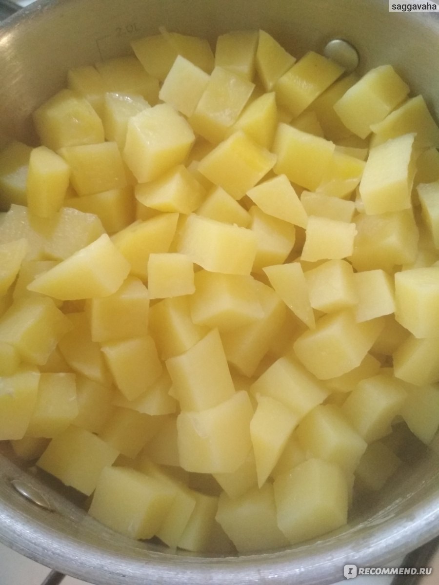 Трето, външният вид на готовия продукт. Освен факта, че не ми хареса вкусът на този сорт в първото ястие, всичко останало беше брилянтно. Варените картофи се получиха чудесно, не се превърнаха в каша. Тъй като Ваня не дъвче много и предпочита картофено пюре, аз му ги направих на пюре. Картофеното пюре беше леко, без бучки или недопечени парченца. Нещо повече, тази специфична характеристика, с фината си сладост, беше от голяма полза да го накарам да се храни правилно, вместо да тича при майка си за мляко по осем пъти на ден (викам му от две години и половина, кога ще ми върне жена ми?).