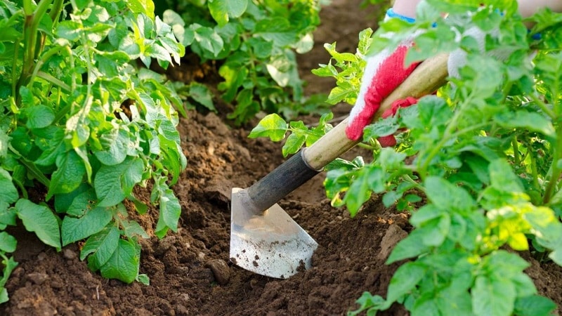 И така, картофите са засадени. Изчакайте седмица, след което разрохкайте почвата. Състоянието на почвата ще покаже необходимостта от окопаване – ако се образува кора върху почвата, е време да се разрохка почвата.