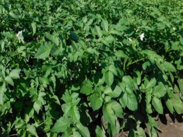 Засадих ги по схема 60 х 25 см, като начертах линии в подготвената почва. Поливах този сорт картофи, както всички останали, по един и същи начин: рядко, но обилно. Плевих, орах, окопавах и се борех с колорадските бръмбари. Картофите растяха весело: зелени листа, бели цветове. Стъблата бяха средно големи.