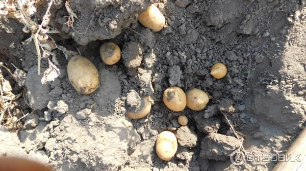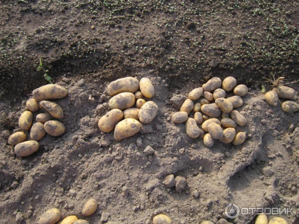 Всеки храст е дал 8-10 грудки. Те са кръгли, със светложълта кора и плитки "очи". Грудките са приблизително с еднакъв размер, не големи, а средно големи.