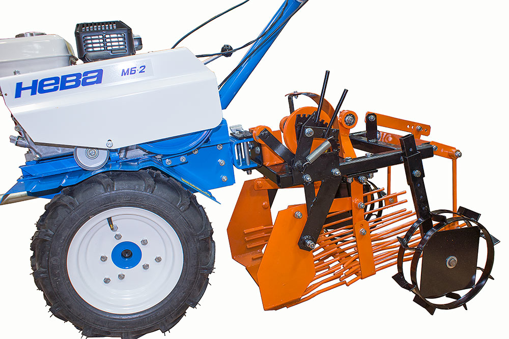 | Конвейерна картофена копачка за мотокар NEVA | Устройството се състои от рипер, лапи, конвейер и тяло. Ножовете са изработени от метал, което осигурява добро сцепление. Ножовете имат работна ширина 30 см и дълбочина 20 см.