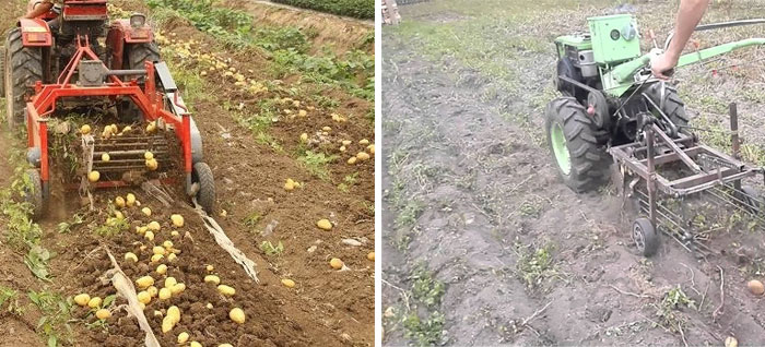 Едноредовите картофени копачки се използват с мотоблокове или минитрактори. Предлагат се и двуредови картофени копачки, но те се използват най-добре с трактор с висока мощност. Разликите между тези картофени копачки са показани на снимката по-долу.