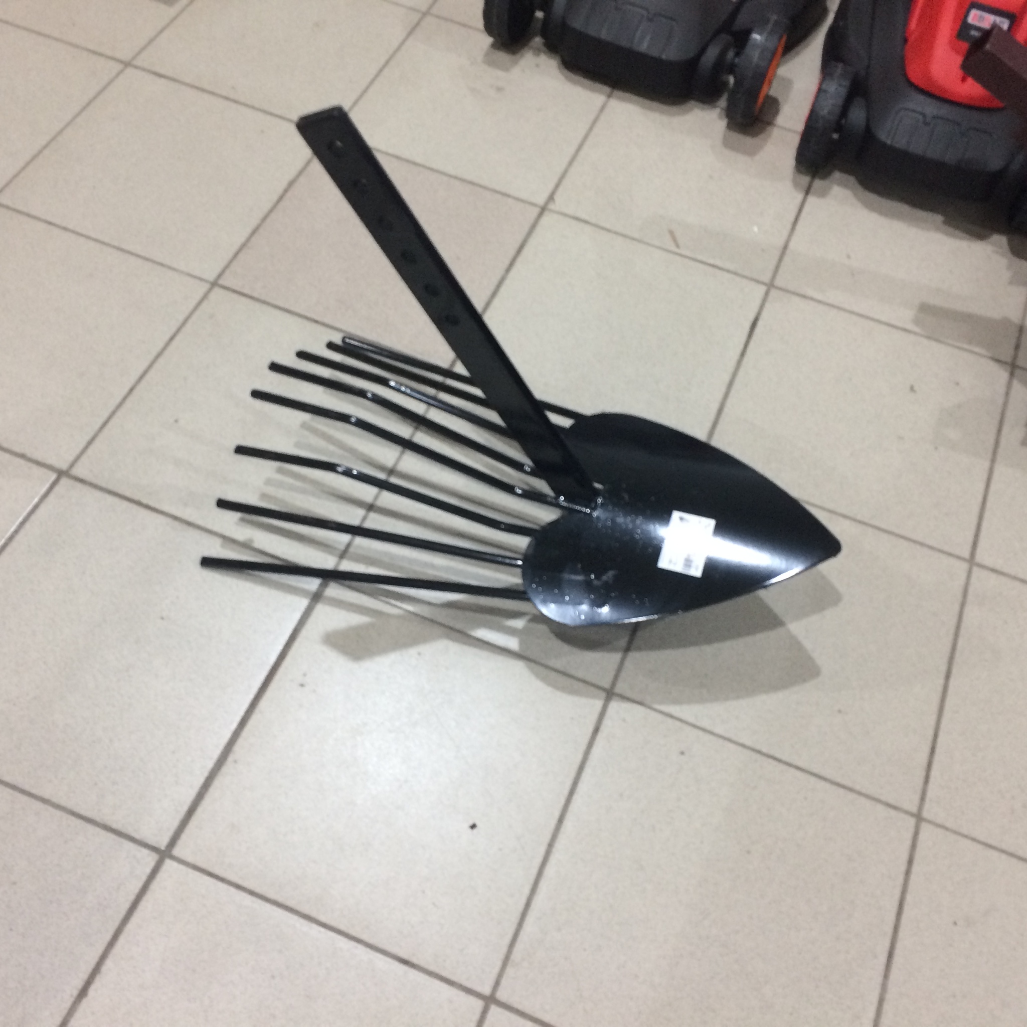 | Ръчна картофокопачка "Торнадика" (Торнадо) | Инструментът се поставя вертикално надолу успоредно на билото и се завърта около оста си - зъбите на инструмента се завинтват в почвата под картофения храст, изхвърляйки клубените навън.