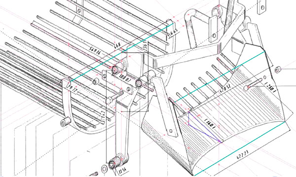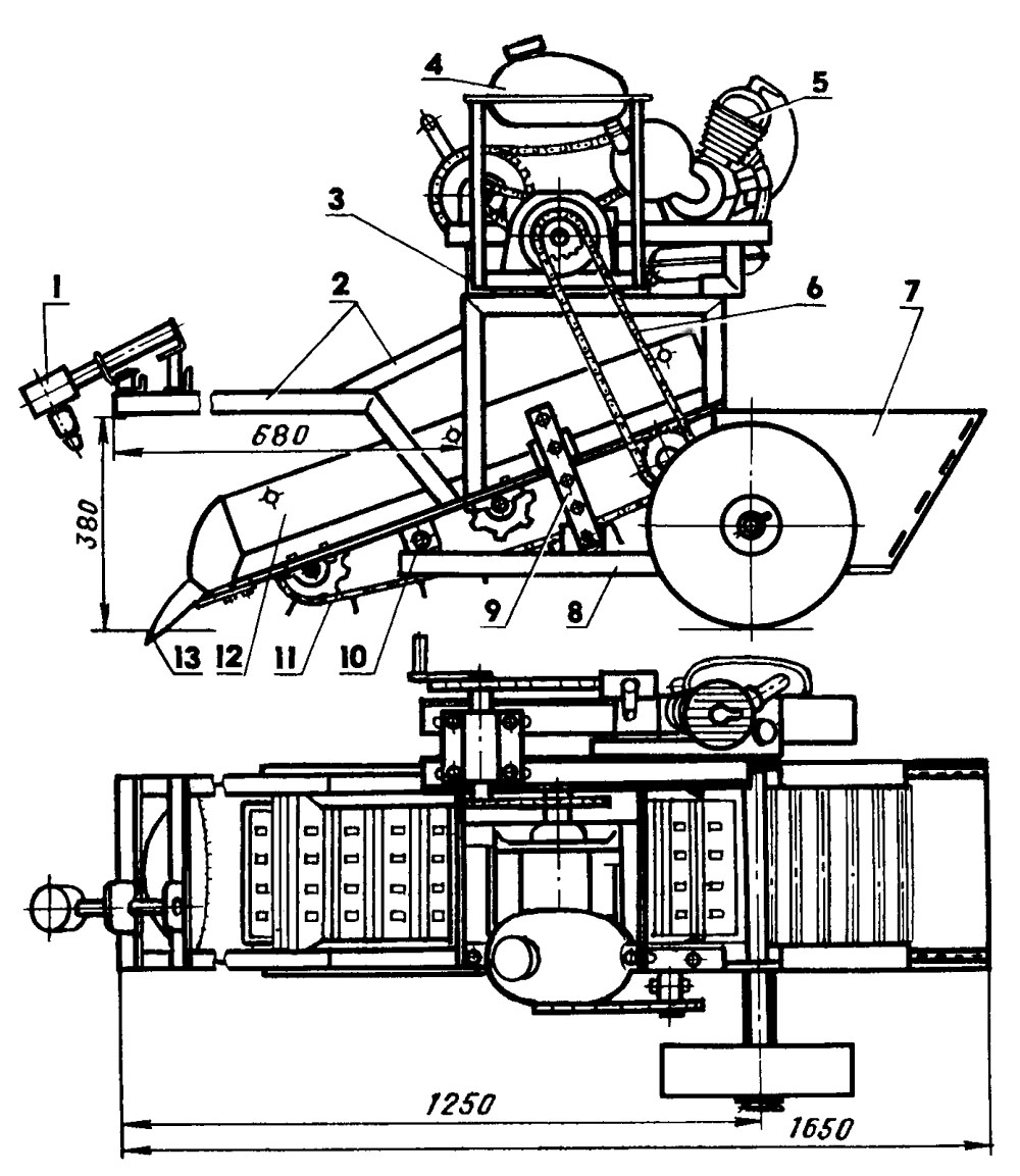 По-долу е даден подробен чертеж на машина за изкопаване на картофи.