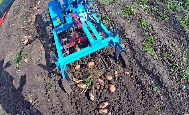 Това удобно устройство може да бъде както голямо, така и съвсем скромно по размер. То работи чрез извличане на клубени от почва, разрохкана с нож, поставянето им върху движеща се лента и след това разделянето им.