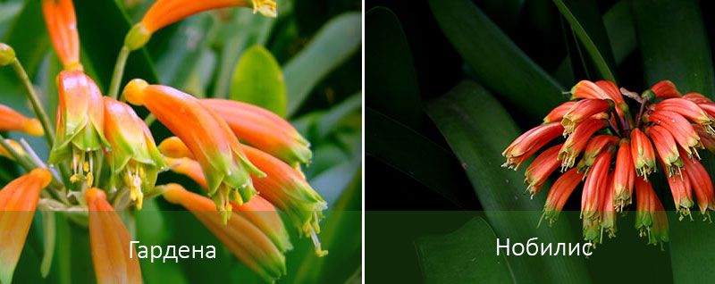 | Нобилис е растение, произхождащо от провинция Кейп в Южна Африка. | Цветното стъбло е дебело и еластично, с няколко сенниковидни цвята с бледочервен цвят, узряващи в края. | Дълъг, наситено зелен на цвят със заострен край. | Втората половина на зимата. |