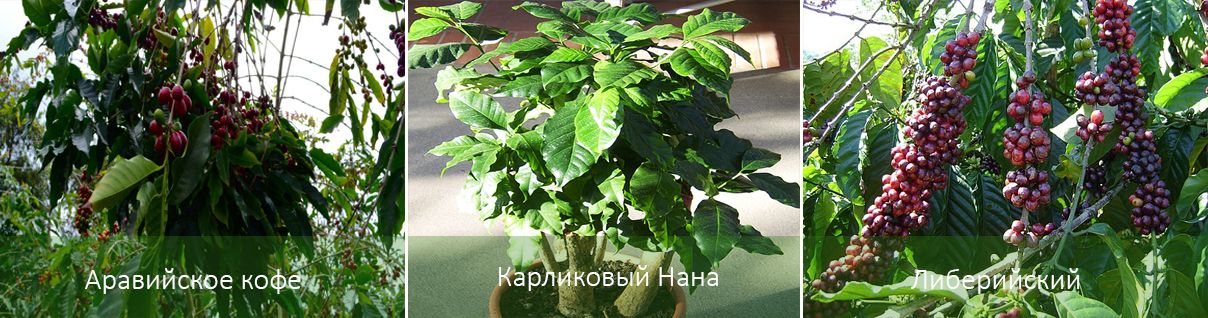 | либерийски | Най-популярният сорт за отглеждане на закрито. Листата са едри, достигат до 40 см. Цветовете, събрани в светло оцветено съцветие, също са доста едри. Плодовете са аленочервени или оранжеви. |