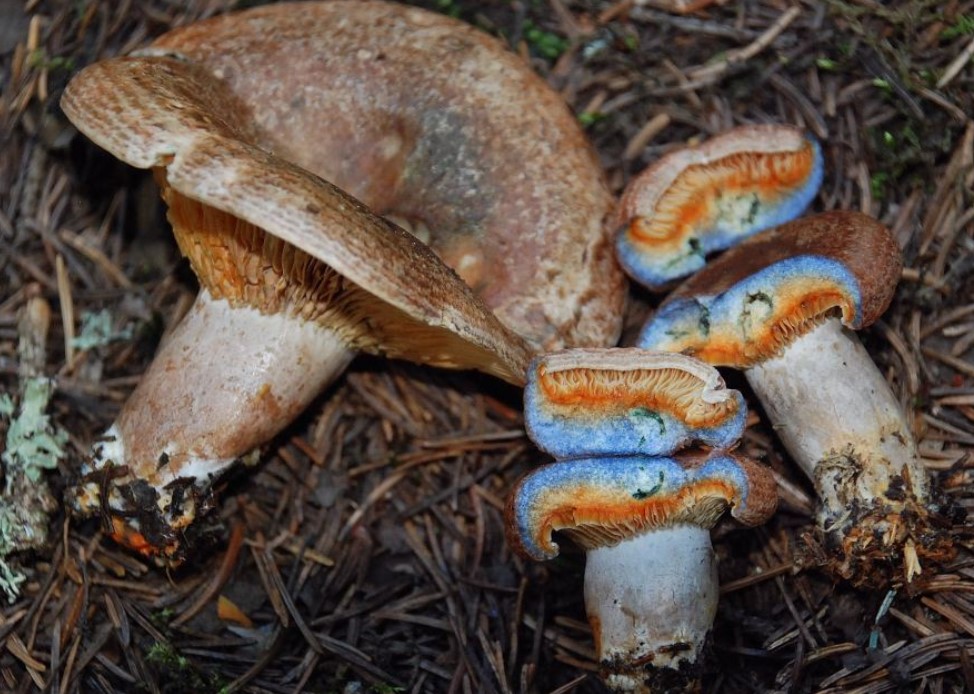 Шапката е синкаво-синя на цвят, но има оранжев подтон. При разрязване оранжевият млечен сок става зеленикав. | Много рядко се среща от гъбарите, расте в смесени и борови гори в Северна Русия. | От август до октомври |