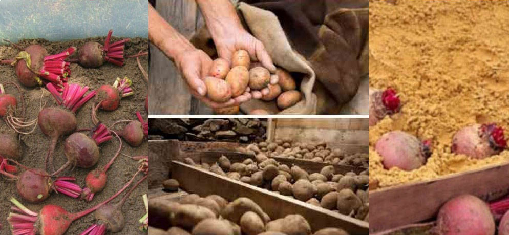 Оптималният температурен диапазон за съхранение на зеленчуци се счита за 85% влажност и температура от +2…+5°C. Когато въздухът в мазето е твърде сух, картофите започват да губят влага и да изсъхват. В този случай поставете там контейнери с вода. Ако влажността е твърде висока, съществува риск от гниене. За да предотвратите това, поставете кутия с дървени въглища до картофите, като периодично сменяте съдържанието, когато се навлажни. Опитните градинари разпръскват редовете картофи с цвекло. Ако има риск от замръзване, реколтата трябва допълнително да се покрие със смърчови клони или суха слама. Фина мрежа ще помогне за защитата на картофите от гризачи.