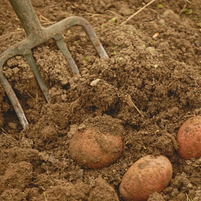 - Вилата е най-лесна за използване при прибиране на реколтата от лехи, където почвата е влажна и тежка. Това обаче може да повреди клубените; дълбоките пробиви могат да ги повредят и трябва да се изядат веднага.