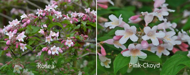 Розеята е най-популярният сорт сред градинарите. Цветните стъбла са ярко розови, когато цъфтят за първи път, но с узряването си съцветията стават бели. Те изглеждат зашеметяващо в композиции с храсти с богати изумруденозелени листа. През есента листата стават ярко оранжеви. Цветното гърло има оранжево-жълта ивица. Този храст изисква внимателна грижа и оформяне на короната.