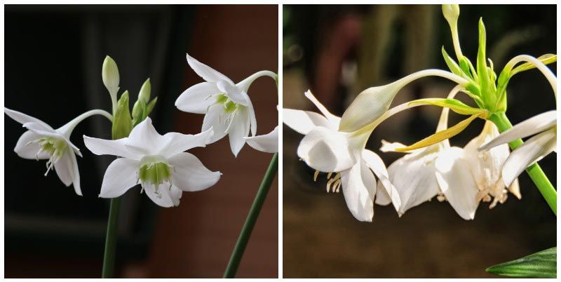 | Еухарис, амазонската лилия | Растението образува високо, стъблообразно съцветие от ароматни бели цветове. То радва посетителите два пъти годишно, в късна есен и пролет. Центърът на цветето се отличава с голяма корона, образувана от обрасли тичинки. Отличителна черта на цъфтежа е големият брой издънки и корени, които обгръщат кореновата топка. |