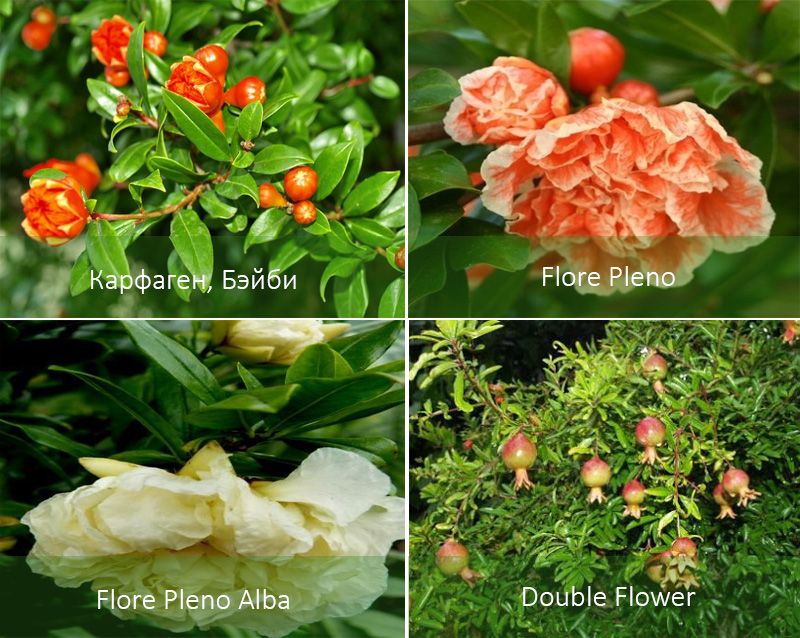 | Картаген, бебе | Не повече от един метър височина. Те приличат на обикновения нар, но са по-малки. Отглеждат се за декоративни цели; плодовете не се ядат. |