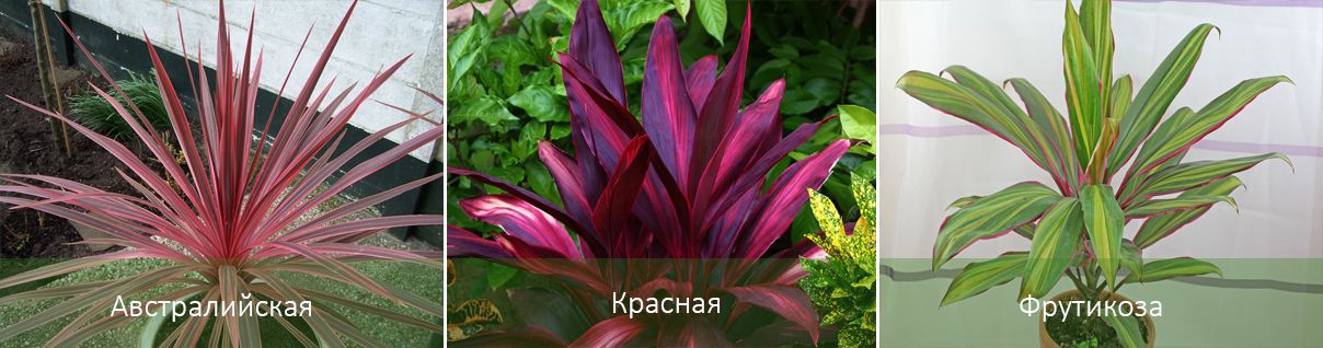 Има няколко вида кордилин, подходящи за отглеждане на закрито: