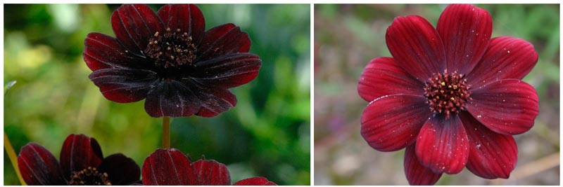 Черният космос е уникално многогодишно растение, произхождащо от Латинска Америка. Неговата поразително красива, кървавочервена шапка излъчва аромат на шоколад и ванилия. Тази характеристика доведе до пълното унищожаване на цветовете в дивата природа. Днес Шоколадовият космос (както е известен още сортът) е плод на усилията на селекционерите, които са помогнали за възстановяването на вида, но вече не се среща по полетата, а само в цветни лехи и ботанически градини, както и по первазите на прозорците на градинарите любители.