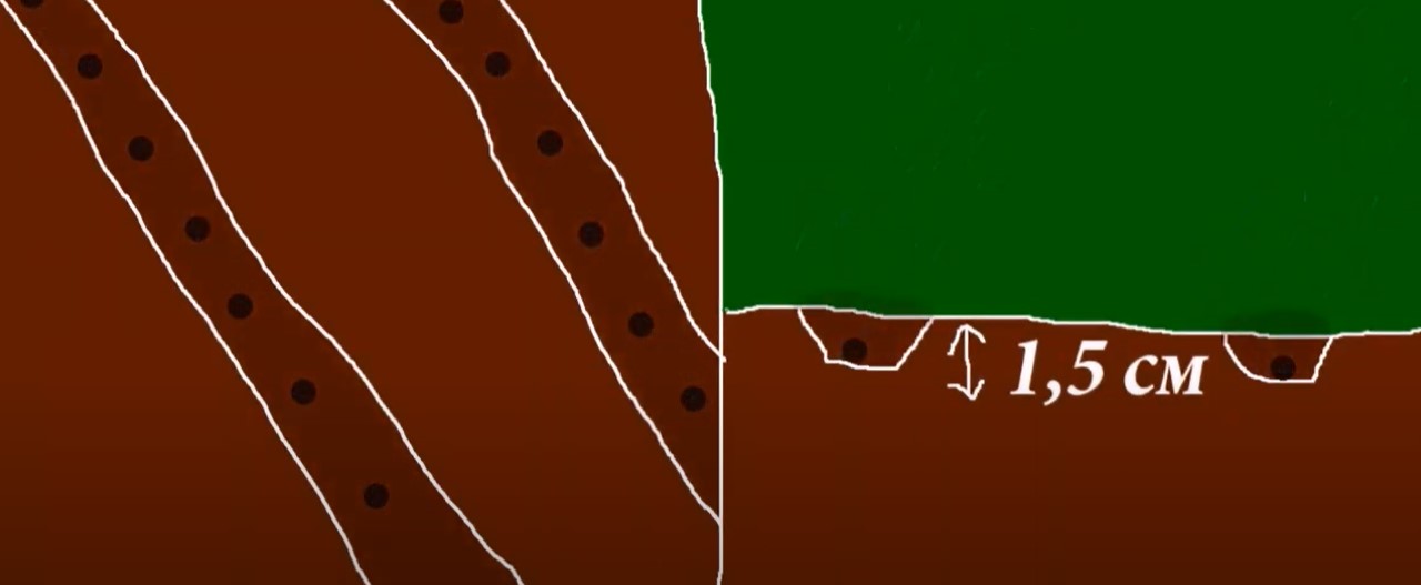 - Изравнете земята, направете бразди с дълбочина 1,5 см.