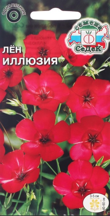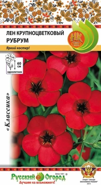 Червеният лен е впечатляващо, ярко цъфтящо едногодишно растение. Храстите му растат до 50-60 см височина. Стъблата са по-дебели, а листата не са толкова нежни, колкото тези на синия лен. Цветовете имат пет венчелистчета и са яркочервени. Храстът е буквално покрит с цветове на стъбла с дантелена зеленина.